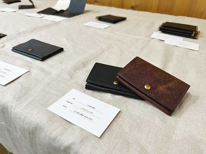 財布や革小物などの通常ラインナップに加えて、1点ものやサンプルが販売されました。