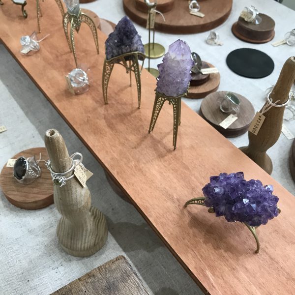 天然石独特の風合い、形状を生かしたジュエリーには稲吉さんの彫金の技術とセンスが自分のような素人目にも見て取れます。