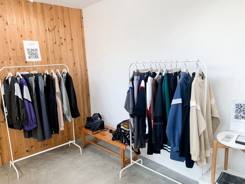 どこか和の要素が漂う魅力的な洋服が沢山並んでいました。