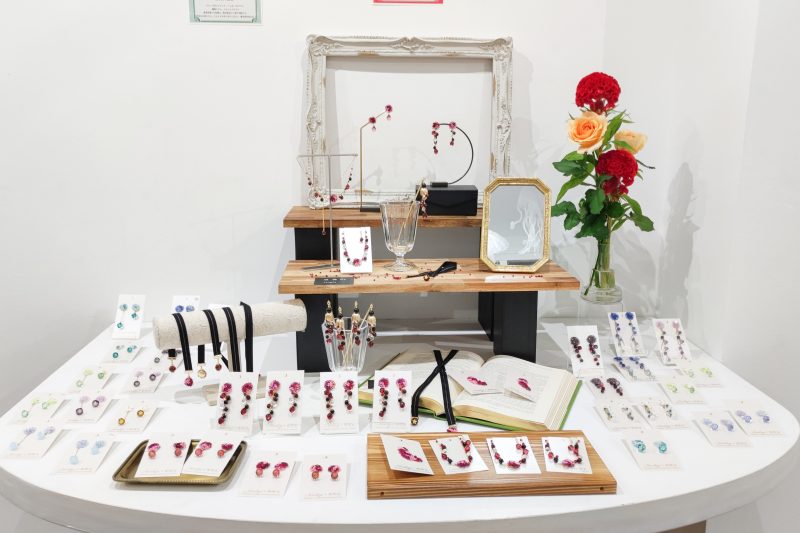 名古屋のレンタルスペースmaison shintenchi(メゾンシンテンチ)をレンタルしていただいた、レースアクセサリーブランド「Novelize(ノベライズ)」とガラスアクセサリーブランド「夜明玉(よあけだま)」によるコラボ展「花と硝子 -雪月風花-」が10月18日をもちまして、終了いたしました。