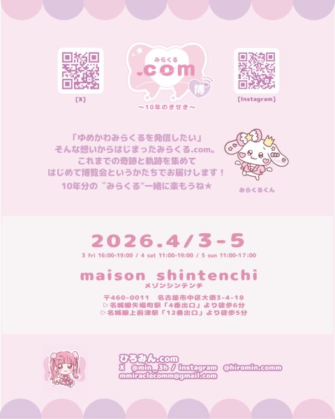 この度、名古屋大須のレンタルスペース maison shintenchi(メゾンシンテンチ)では、アパレルブランド「みらくる.com(ミラクルドットコム)」による「みらくる博 -10年のきせき-」が開催されます。