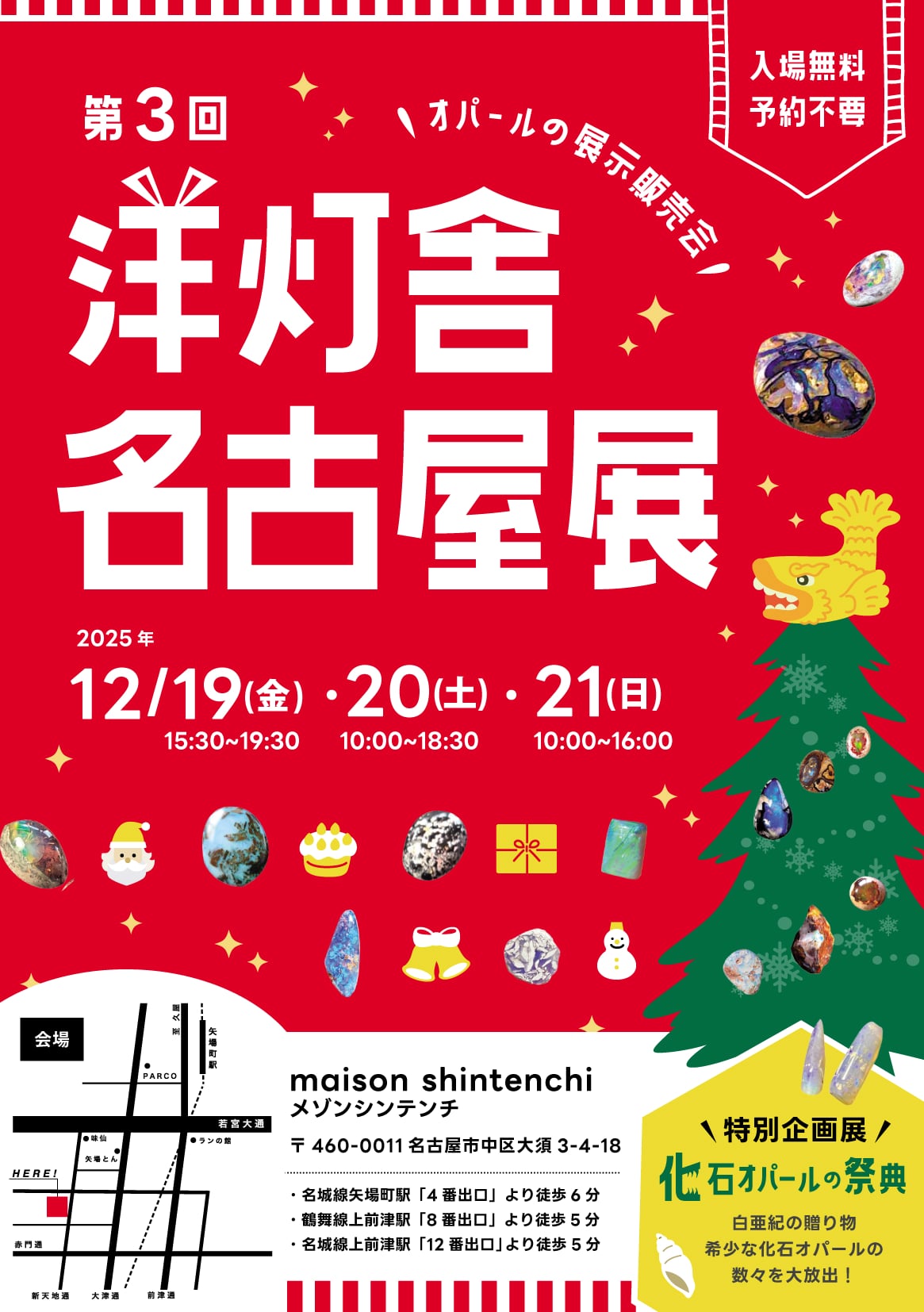 この度、名古屋大須のレンタルスペース maison shintenchi(メゾンシンテンチ)では、オパール専門店「洋灯舎(ヨウトウシャ)」による「第3回洋灯舎名古屋展」が開催されます。