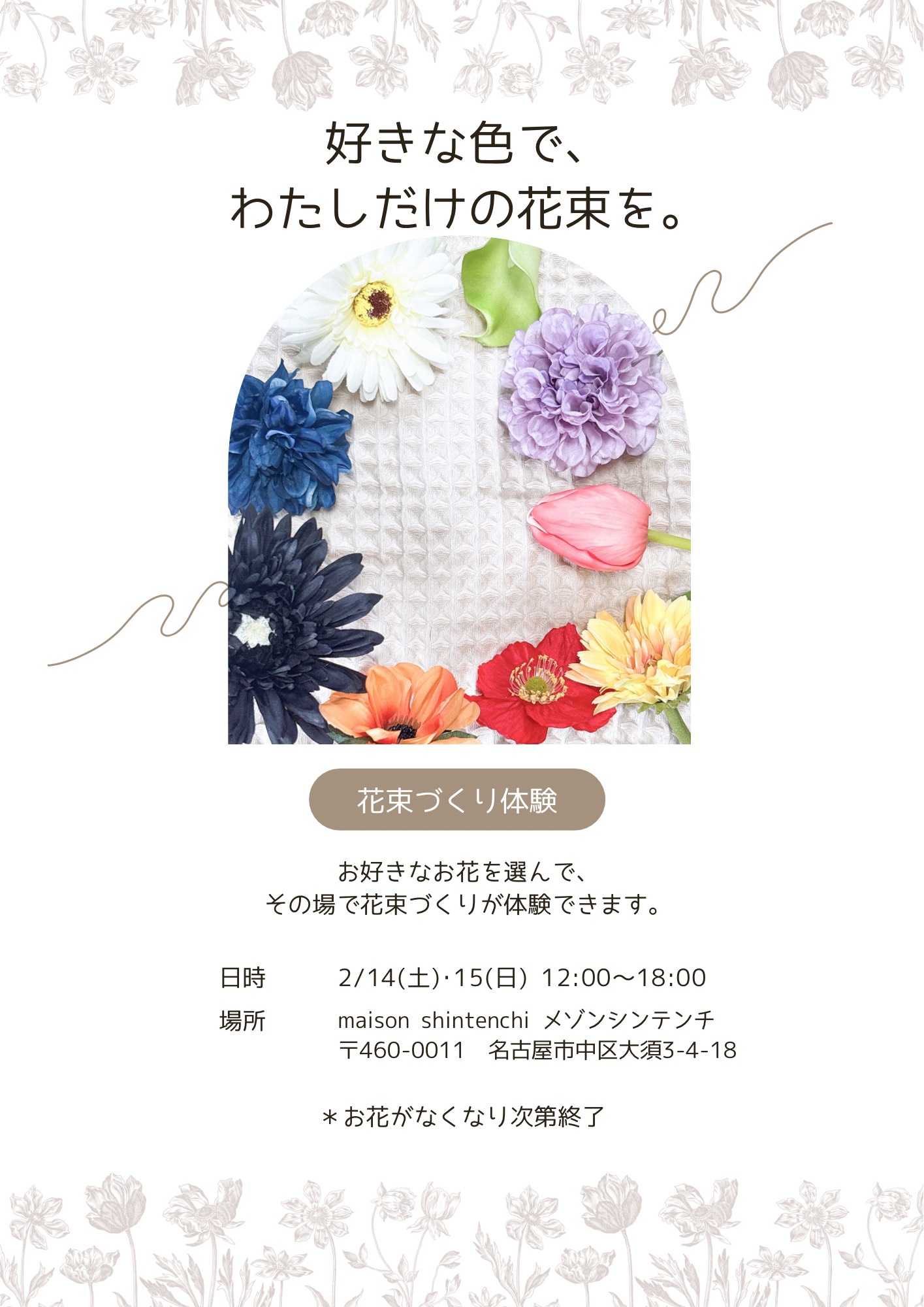 【02.14-02.15】好きな色で、わたしだけの花束を。ー花束づくり体験ー